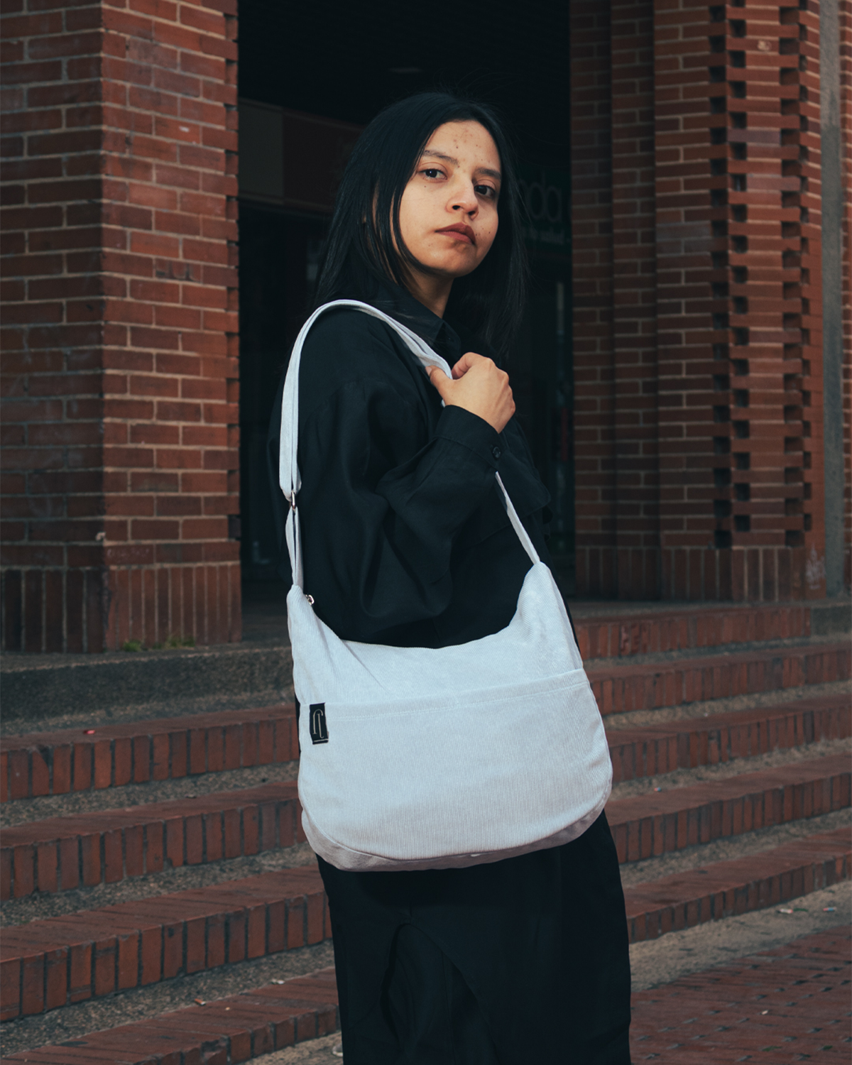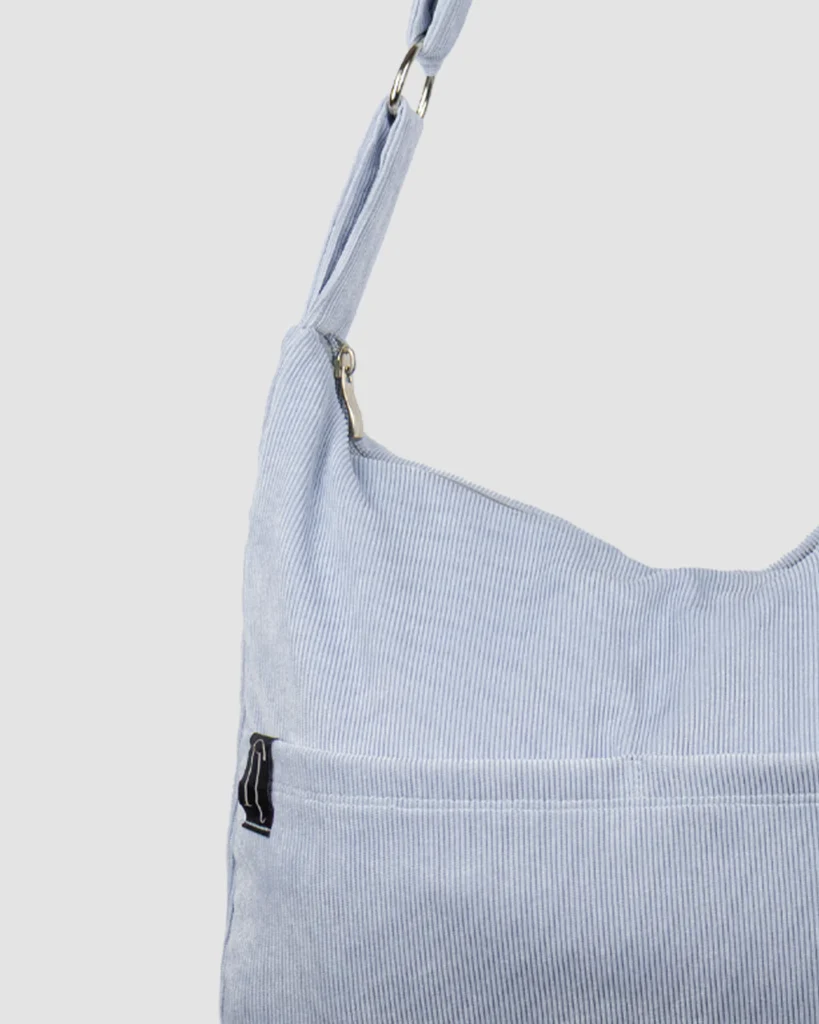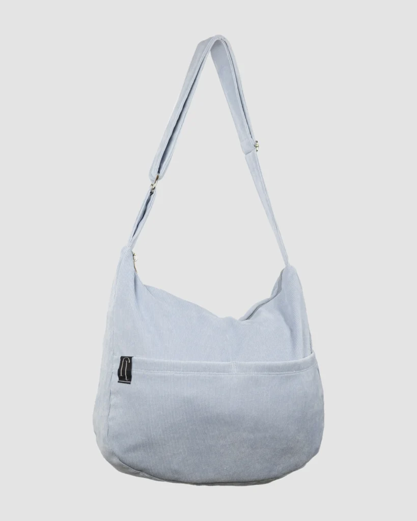 Drape color azul, hecha en tela pana, su correa es extensible, ideal para el día a día, espaciosa y estilo único.